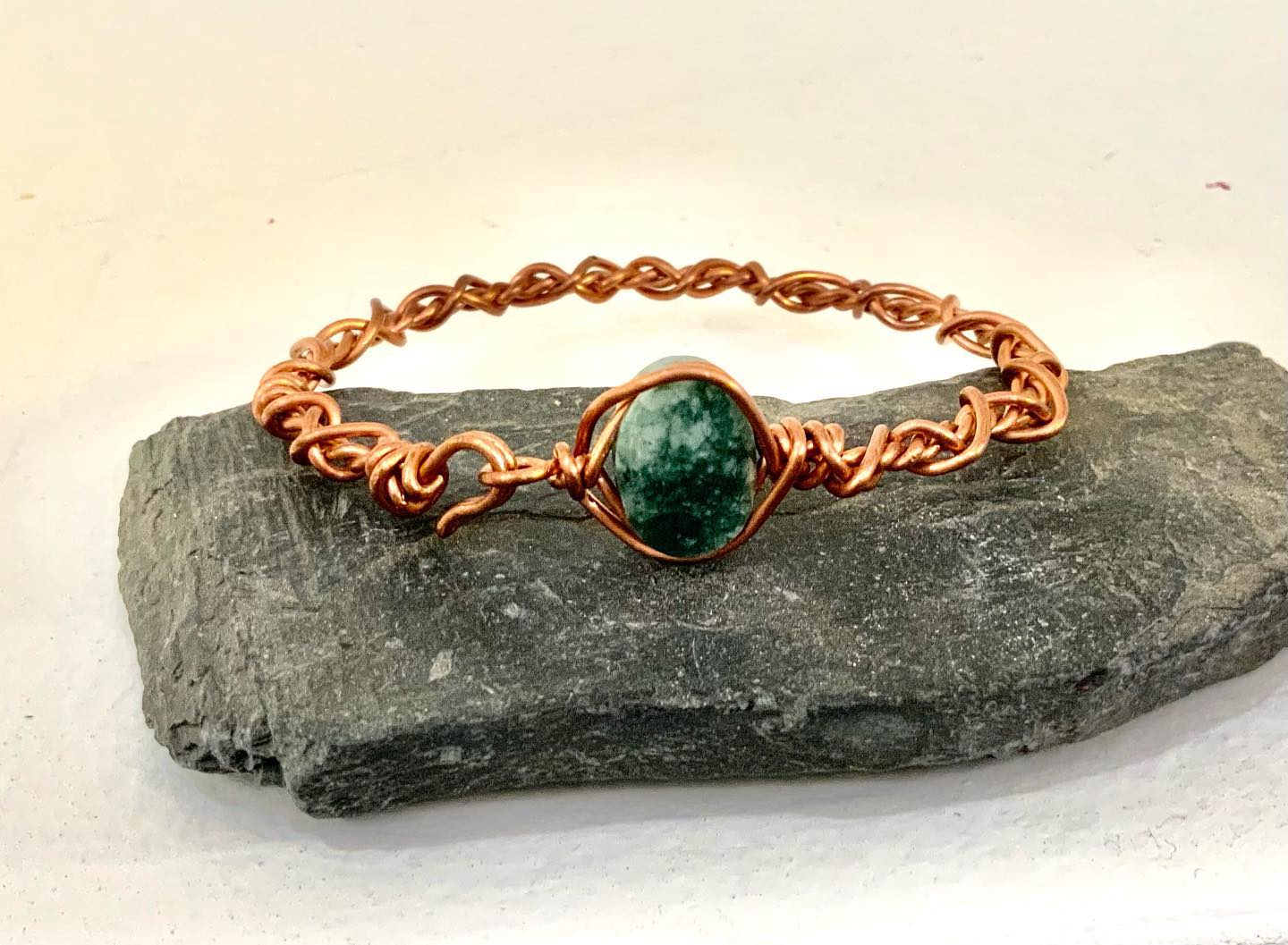 Green jade handmade copper bracelet